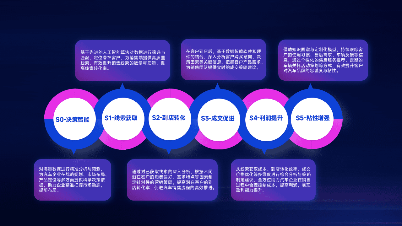 通过拓宽潜在客户来源、、、、优化线索分配并提高到店转化率,,,以增强销售效率。。。同时,,,利用线索数据不断优化分析模型,,,有效提升转化率,,,,扩大营销影响力。。。。